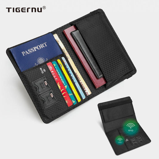 Tigernu Business Passport Cover RFID Anti theft Protection Men Card & ID Holder Genuine Leather Wallets For Men Bags Male Purses