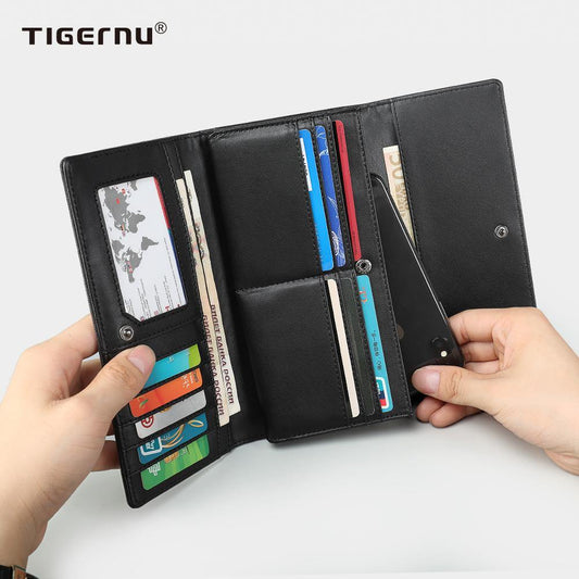 Tigernu Casual Man Long Wallet Male Coin Multi Pockets Money DollarCard Holder Purses For Men Fashion Style Wallet Card Holder