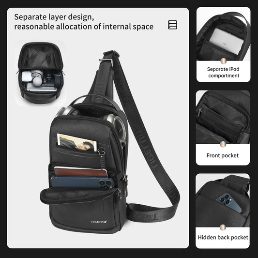 Fashion men's Tigernu mini travel bag, high-quality waterproof shoulder bag, small cross body, messenger, connection series
