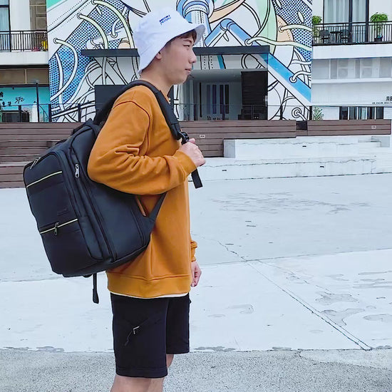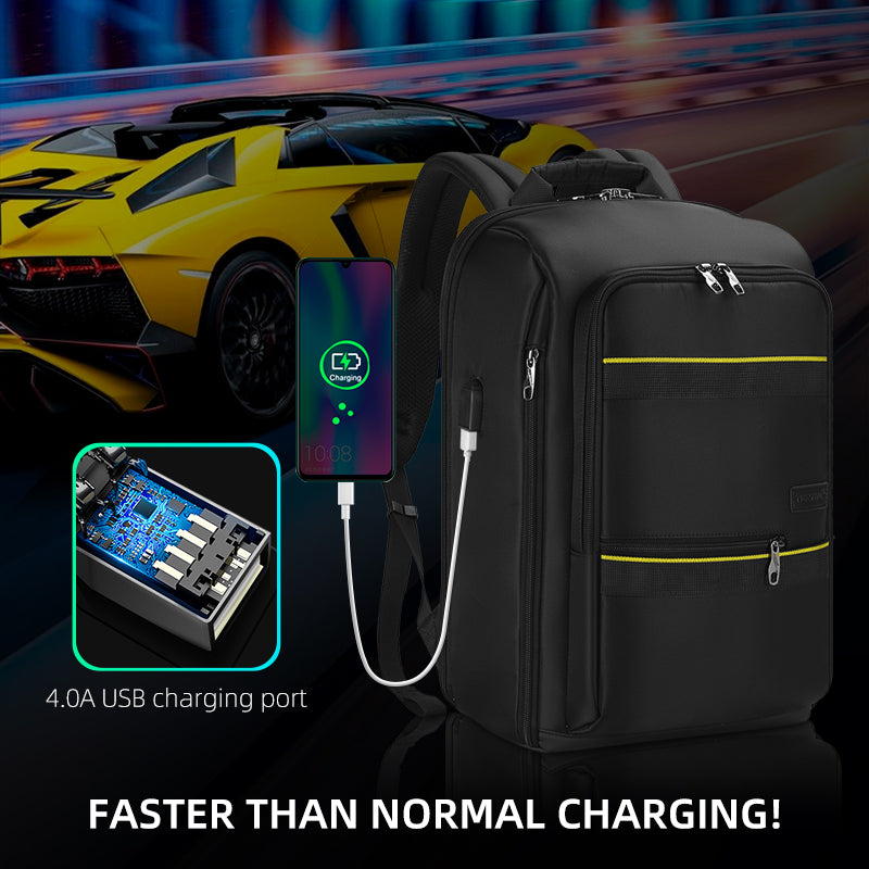 • Features: The front side decorated with a yellow lined ribbon, making the backpack more fashion. A build-in USB port and a cable enable you to charge your phone whenever and wherever.The backside has a luggage strap for you to hold to your suitcase when travel.