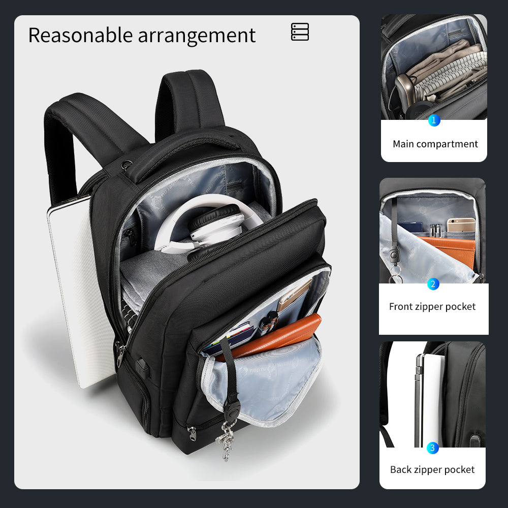 - Material: The fashion business backpack is made of splashproof&scratch resistant nylon, making sure it is durable to withstand harsh conditions and easy to clean.Waterproof fabric keep your items safe from splash and drizzle.