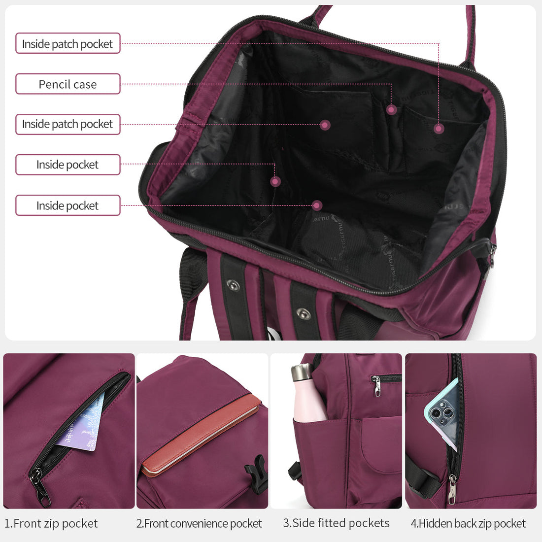 The Thoughtful Choice for Mothers: TIGERNU Diaper Bag with Large Capacity Wide Opening Design, Convenient Storage and Easy Travel